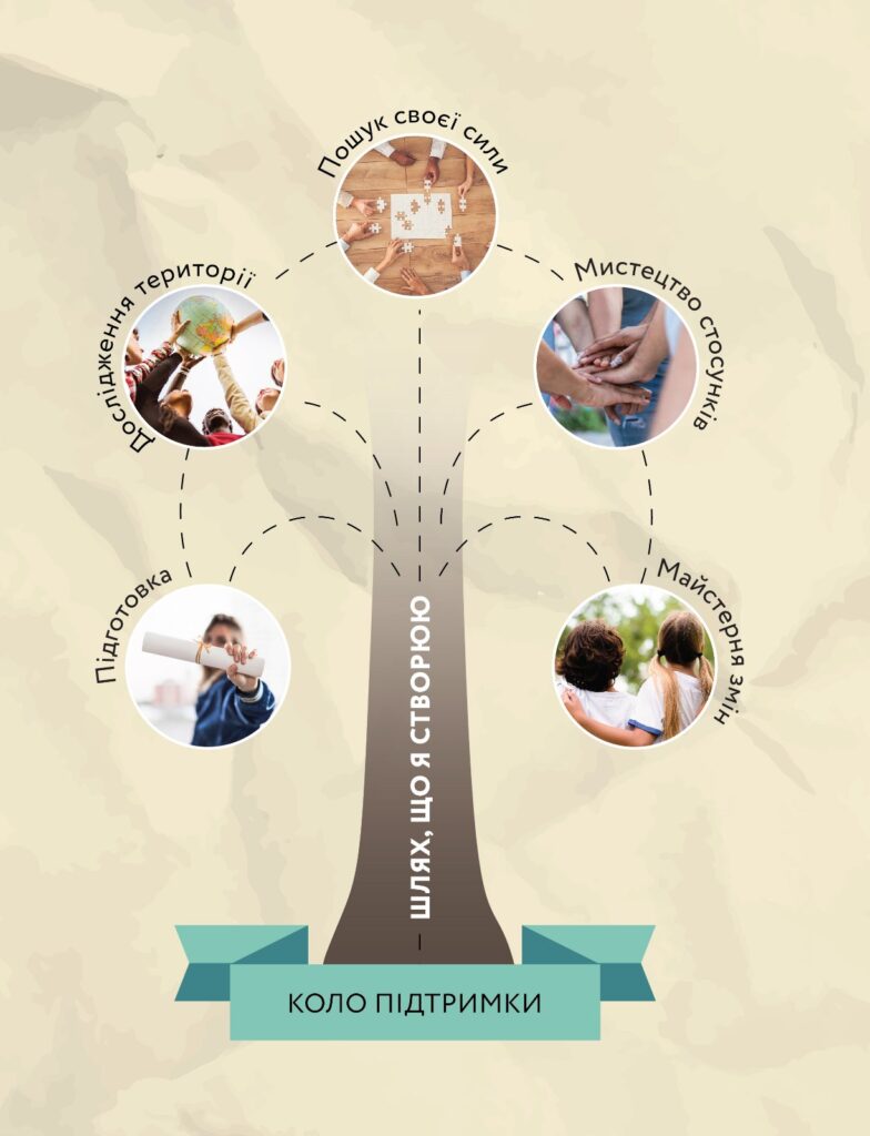 На кожному етапі ми працюємо з проєктами позитивних змін, спираючись на теми поточного модуля. Саме тут ми дивимося, як те, що ми вивчили, може бути застосоване в реальному житті, і що відбувається, коли ми починаємо діяти, а не лише розмірковувати.